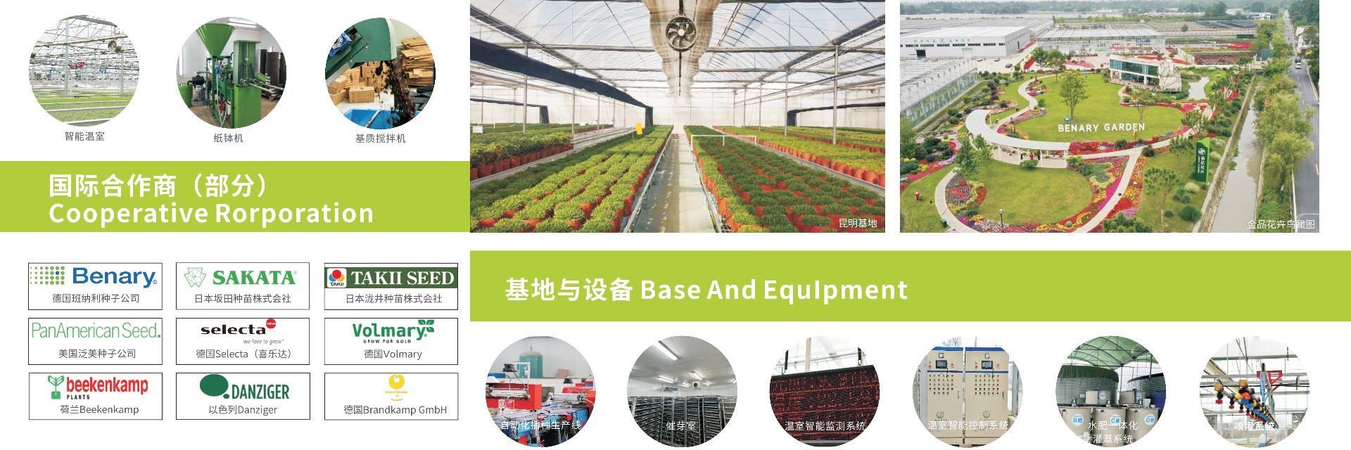截止2021年,公司以班納利及愛墾園藝為依托,與全球20多家國際知名花卉育種公司保持著良好的合作關系,供應各類種繁花卉種子及種苗、無性系花卉種苗2000多種,取得超過300種品種專賣權。